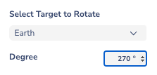 A continuación, también puede establecer el grado de rotación. Deja que la tierra gire un poco más despacio, así que para el grado, agregaremos 270 grados. Pero, por supuesto, puedes configurarlo como quieras.